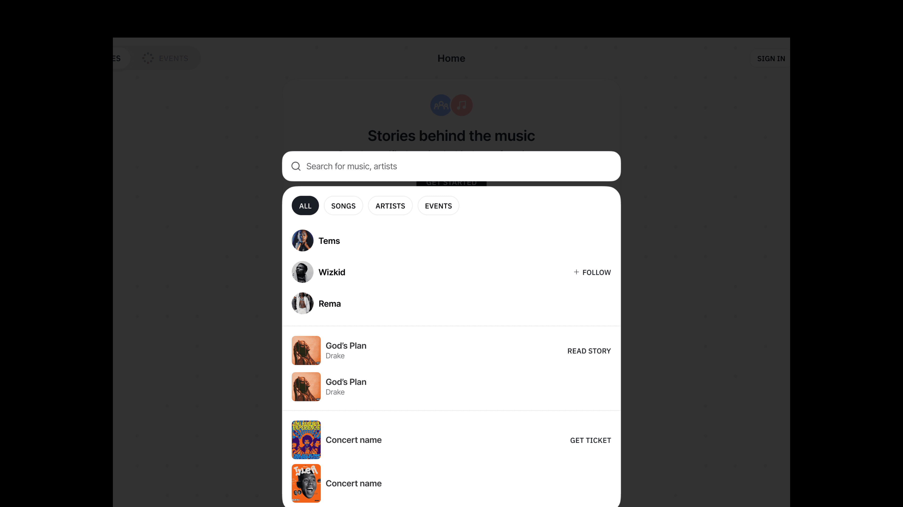 Artists had no built-in way to promote their live shows or link stories to real-world performances.